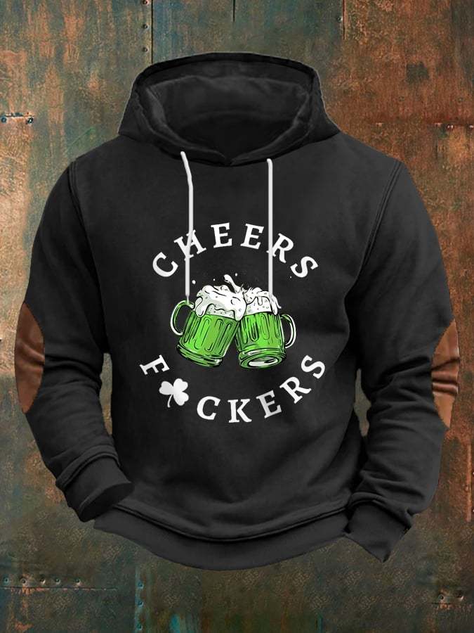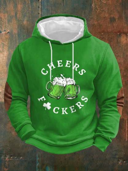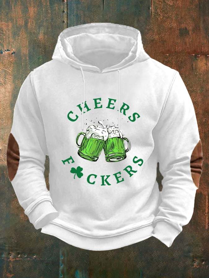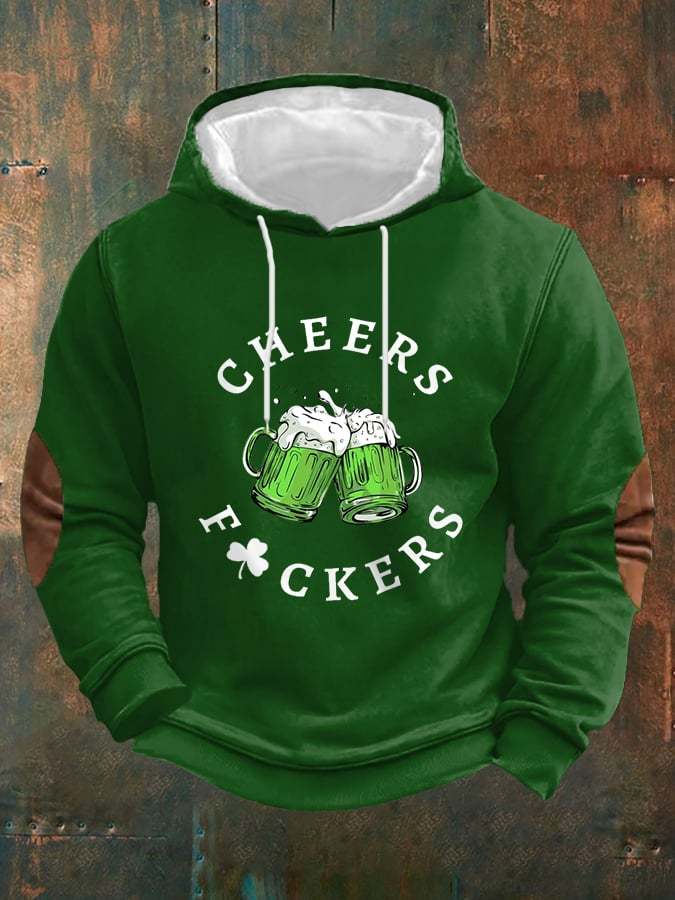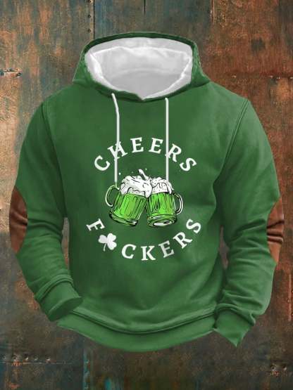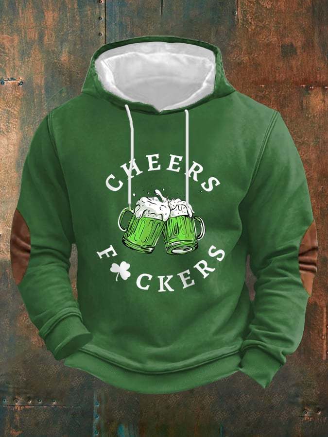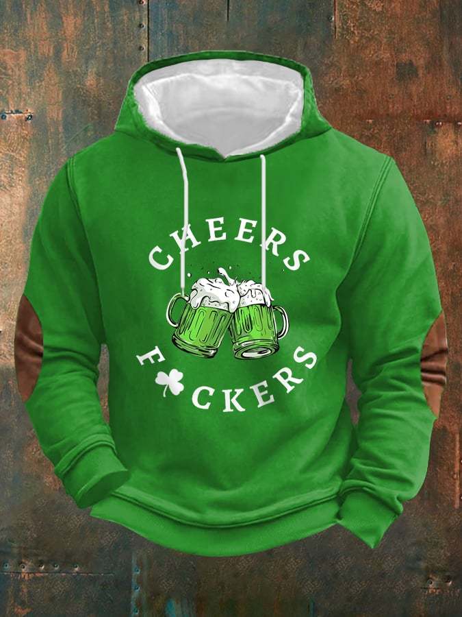 Men's FunnySt. Patrick's Day Cheers Green Beer Shamrock Print Casual Hoodie