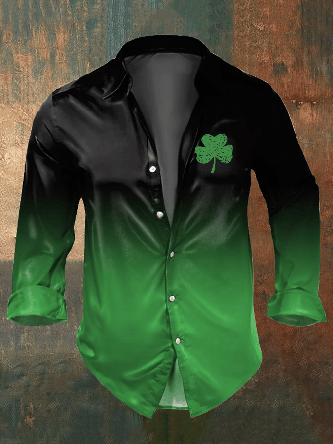 Men's Satin Glossy Fabric St. Patrick's Day Long Sleeve Shirt