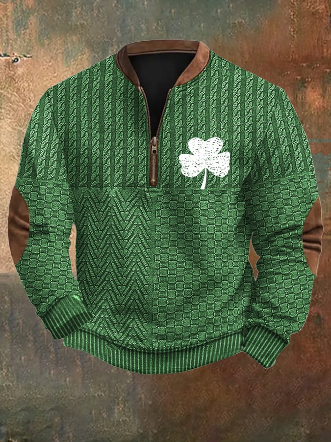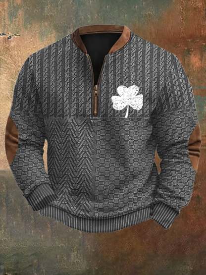 Men's St. Patrick's Day Print Zipper Collar Sweatshirt