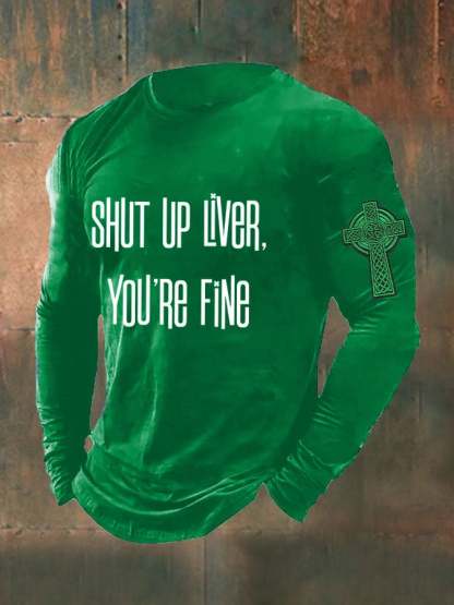 Men's St Patricks Day Shut Up Liver You're Fine Print T-Shirt