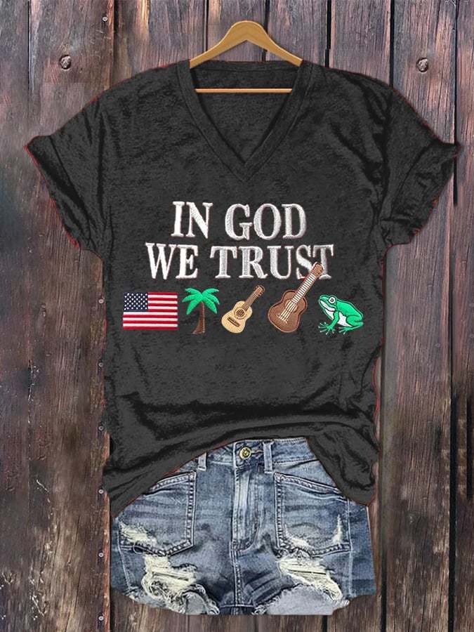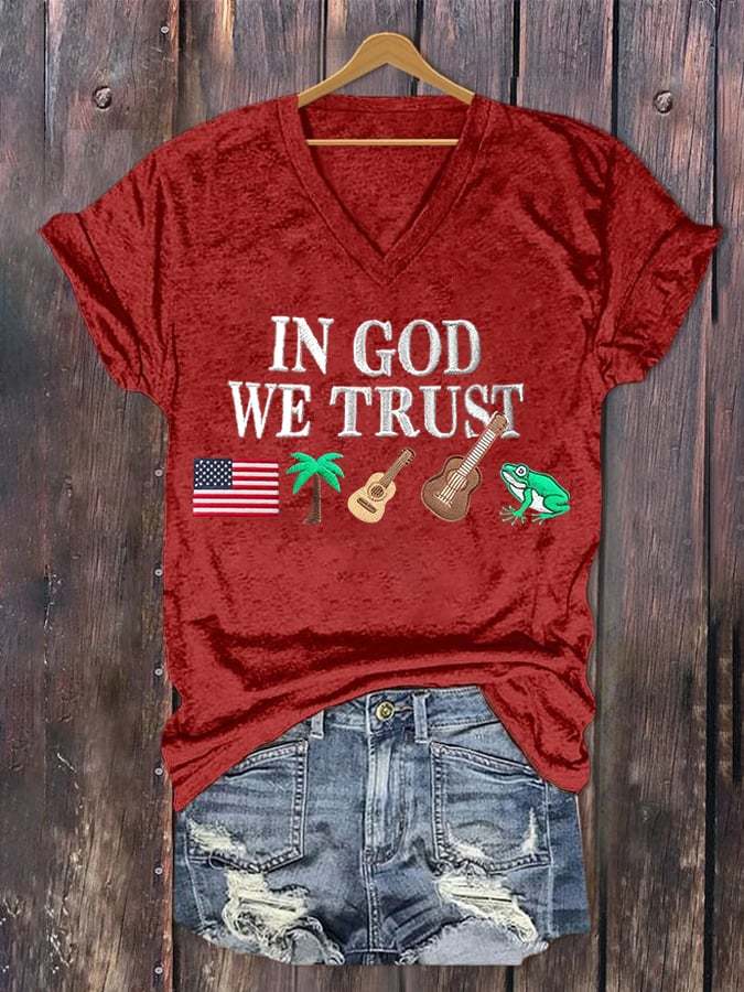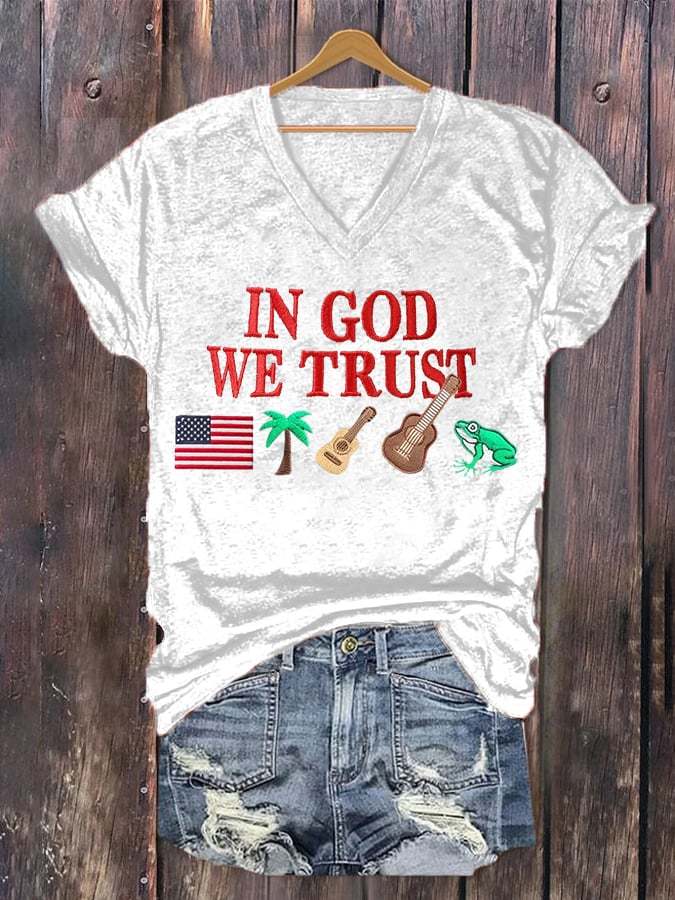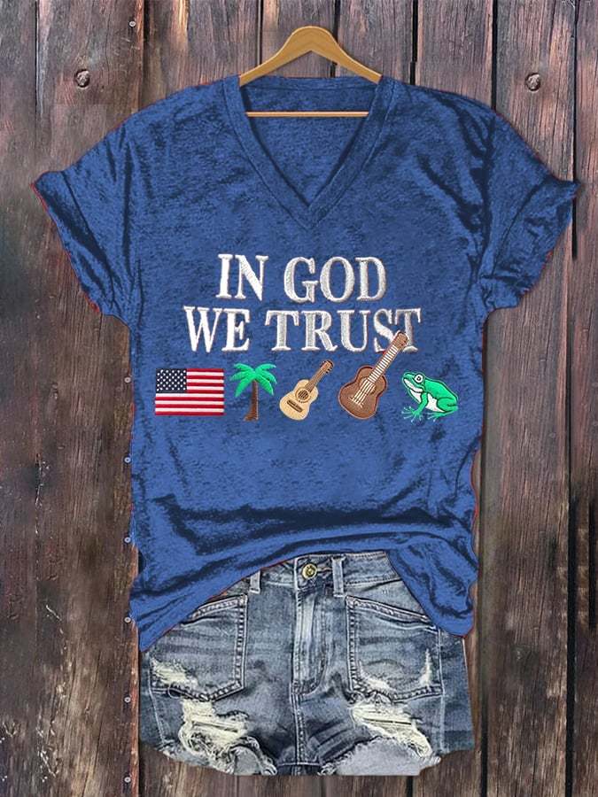 Women'S Independence Day Flag Printed V-Neck T-Shirt